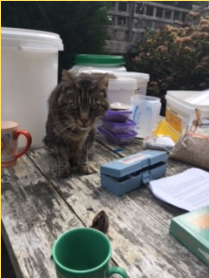 En wederom kan Tijger het niet laten om even te komen kijken. Was niet alleen het eerste eigen biertje van JB de Hobbybrouwers genoemd naar de Kat van Bart en Clara: hij superviseert graag het werk van de andere bieren.